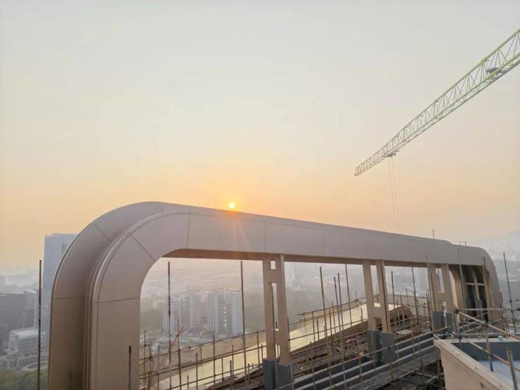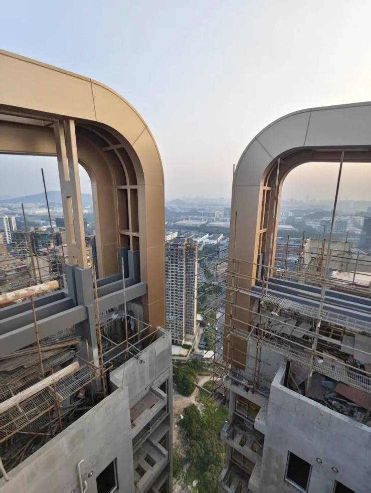 清晨第一缕光掠过科学城,大壮名城的工地已进入有序的节奏。科丰路与开泰大道交汇处,塔吊舒展长臂,正在作业中的4号楼外立面幕墙框架施工结构清晰可见,工人们的身影在其间忙碌,每一根龙骨、每一处焊接点,都在为这座城市的中心天际线奠定坚实的基础。